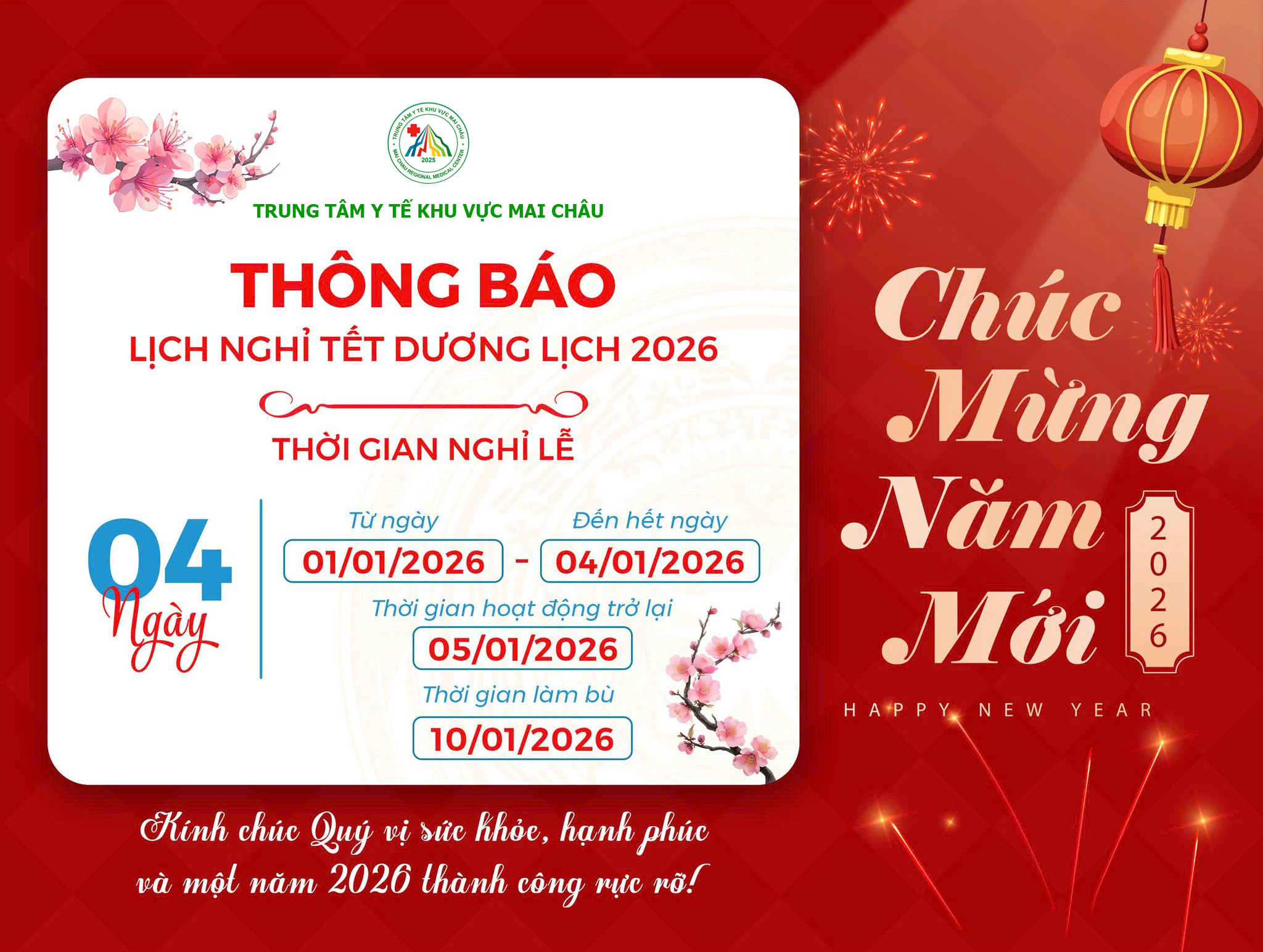 - THÔNG BÁO LỊCH NGHỈ TẾT DƯƠNG LỊCH 2026 Tháng 12 30, 2025