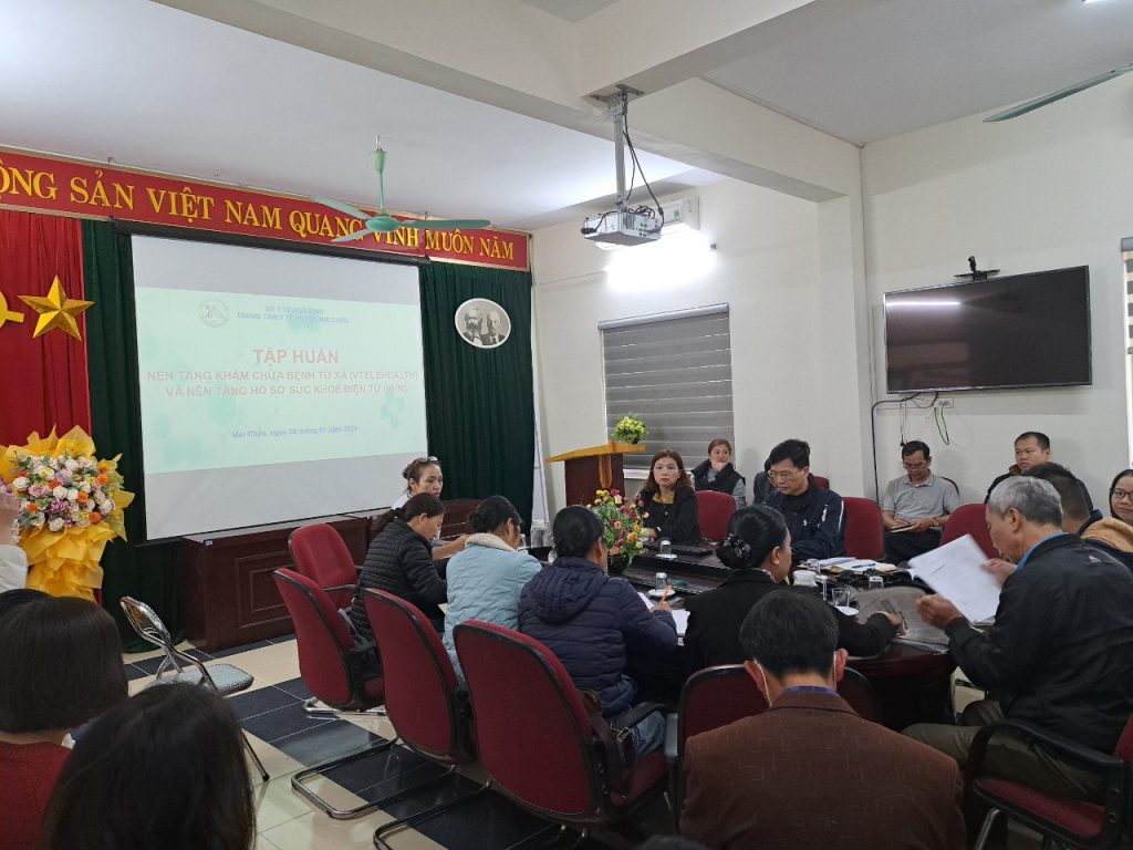Sáng ngày 8/12/2024 Trung tâm Y tế huyện Mai Châu triển khai tập huấn Nền tảng Hỗ trợ tư vấn khám chữa bệnh từ xa (VTelehealth) và Nền tảng Hồ sơ sức khoẻ điện tử (VHR) 51 Cán bộ y tế, dân số tại 23 điểm trạm Y tế trực thuộc trung tâm Y tế huyện.