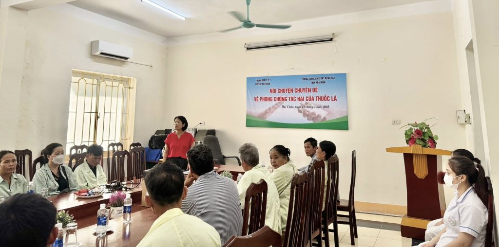 Thực hiện Kế hoạch số 348/KH-KSBT ngày 09/04/2025 của Trung tâm Kiểm soát bệnh tật tỉnh Hoà Bình về việc Nói chuyện Chuyên đề về Phòng chống tác hại của thuốc lá tại Bệnh viện và Trung tâm Y tế huyện, thành phố trên địa bàn tỉnh Hoà Bình năm 2025.
