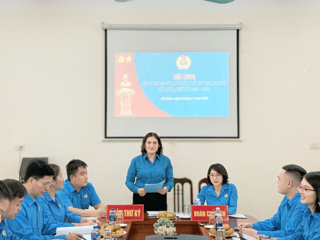 – Tại Hội nghị, đồng chí Hà Thị Thuý – Phó Chủ tịch Công đoàn Cơ sở đã trình bày báo cáo tổng kết, đánh giá kết quả thực hiện Nghị quyết Đại hội Công đoàn nhiệm kỳ 2023–2028; đồng thời đề xuất phương hướng, mục tiêu, chỉ tiêu và các giải pháp trọng tâm nhằm nâng cao hiệu quả hoạt động công đoàn trong nhiệm kỳ 2025–2030.